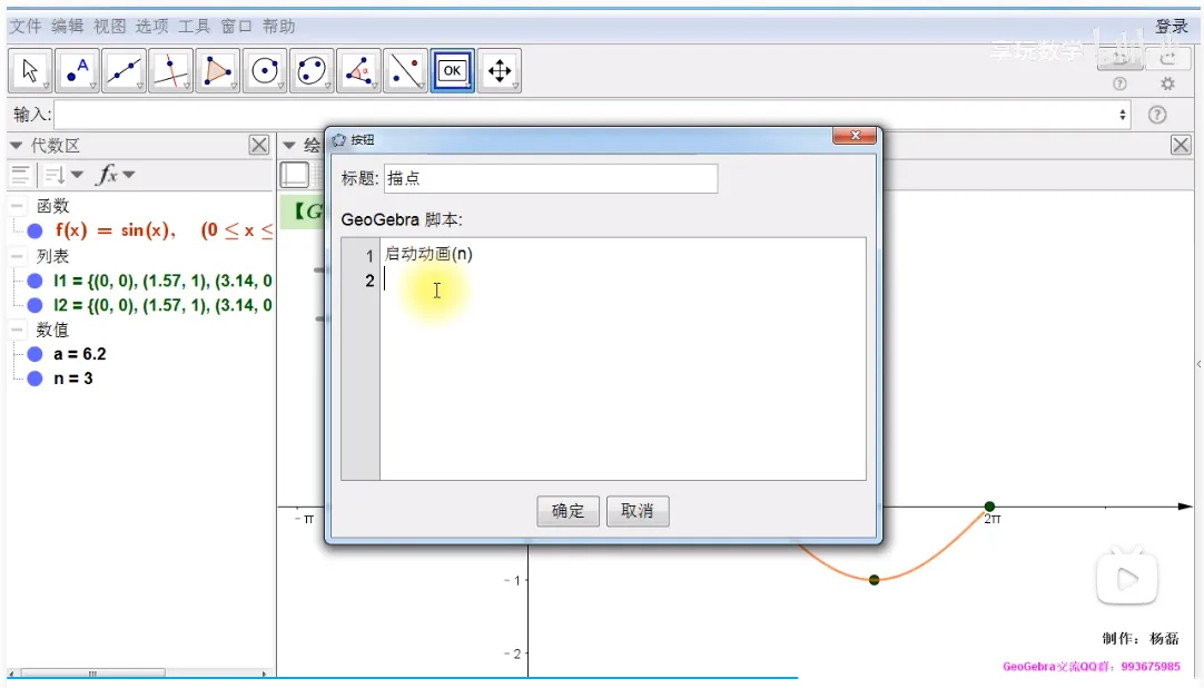 需要注意的一个细节问题,就是需要在坐标系的属性设置之中,将x轴的单位设置为兀,很简单的,只需要找到对应的位置修改就可以。然后我们需要创建一个滑动条,整数的滑动条,相关设置如图