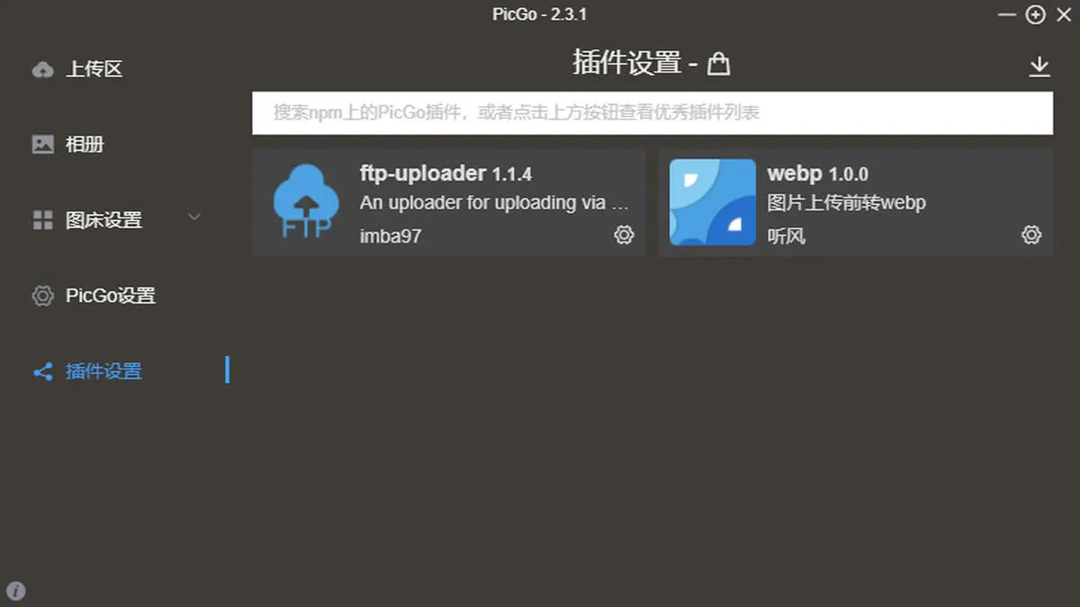 因为我使用的是ftp模式上传,所以需要下载ftp-uploader1.14插件,非常简单,只要在picgo的插件设置中搜索ftp-uploader1.14这个插件,然后安装就可以,随后就是配置信息ftpUploader.json,需要将这个文件放到picgo的文件夹里面,和picgo.exe同文件夹,代码如下: