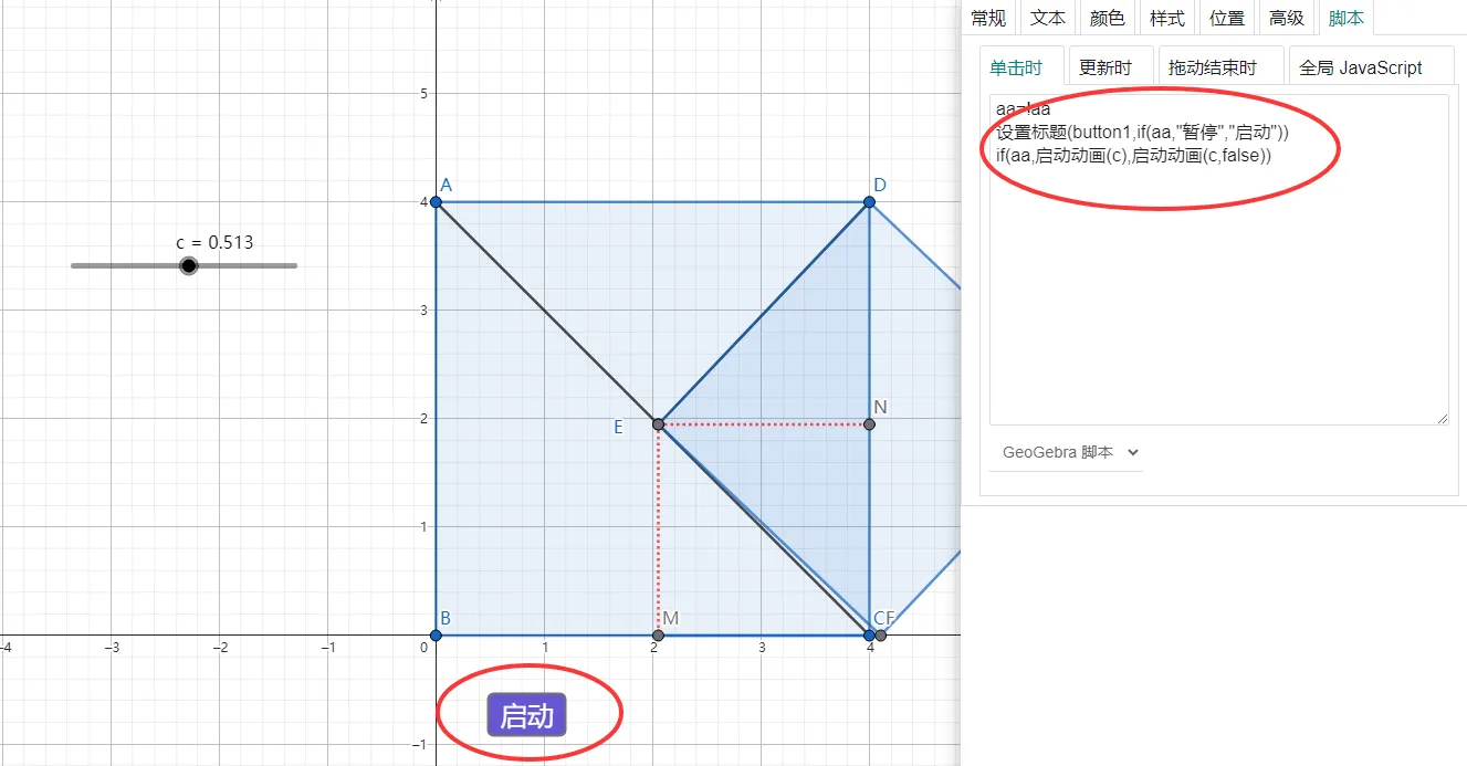 如何给GeoGebra动画添加"播放"和"暂停"按钮