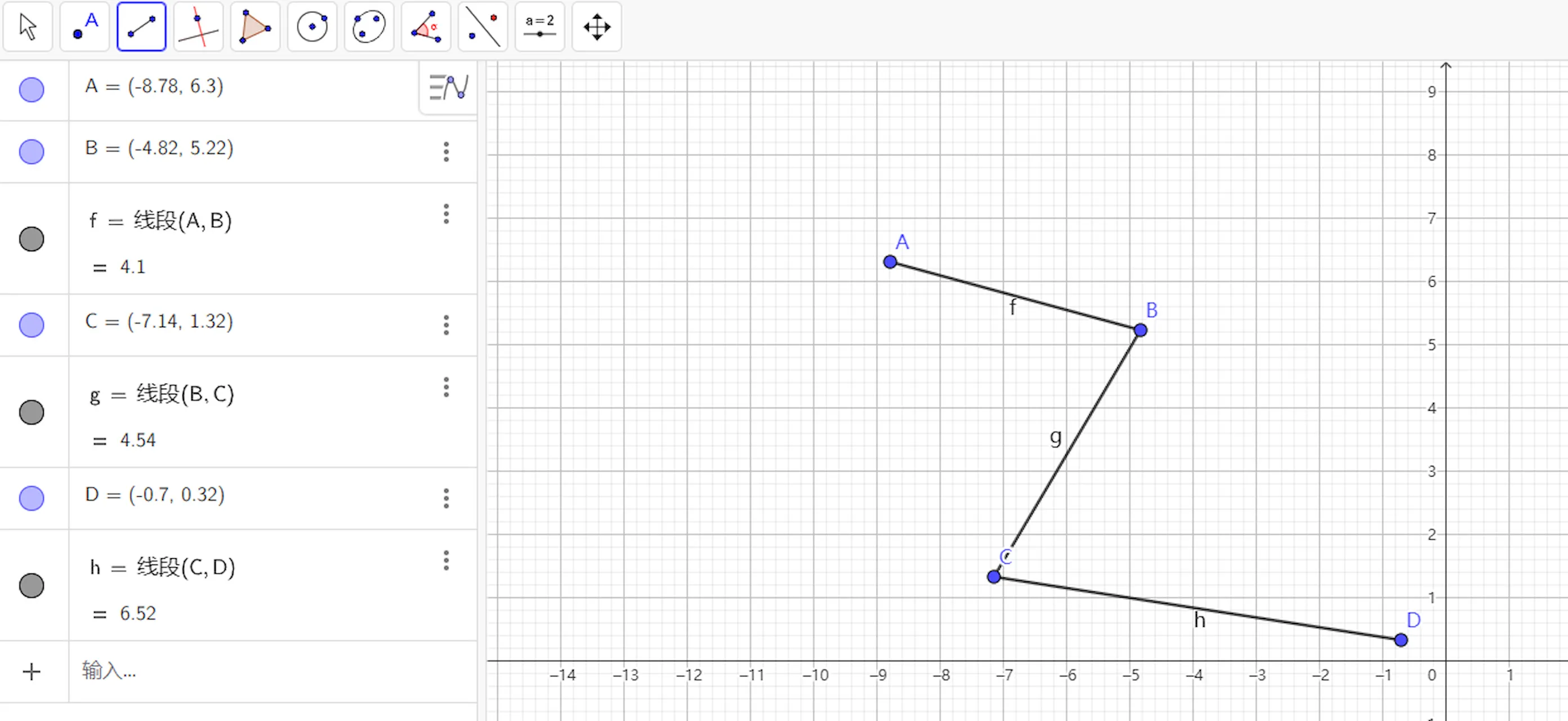 Geogebra使用折线指令创建折线