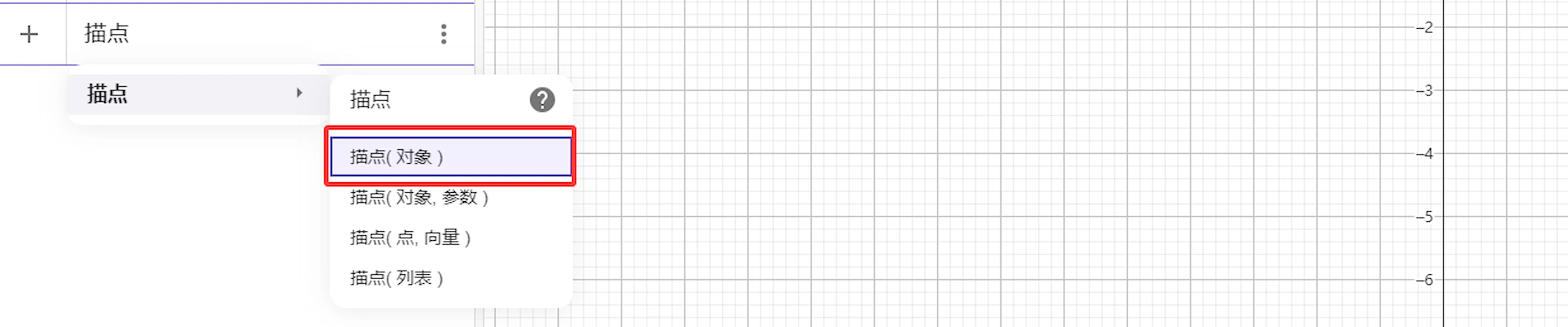 然后我们在代数区的输入框中输入创建点的指令:描点,在这里我们使用