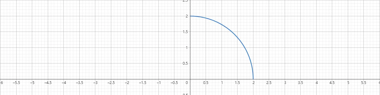 1 | x^2 + y^2 -4 =0/(x>0&&y>0) |