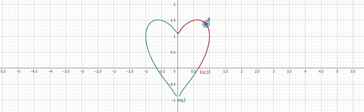 利用 locus( ) 命令绘制红色区域内的曲线。利用 locus( ) 轨迹命令绘制要比方法一效果好得多,比方法二在数学处理上简单得多,步骤如下。绘制隐式曲线,并在曲线上取任意一点