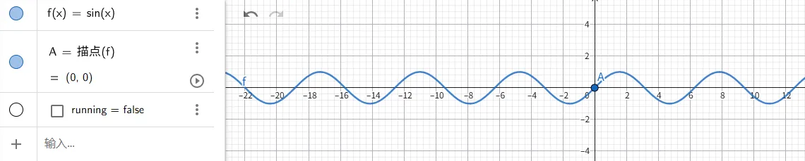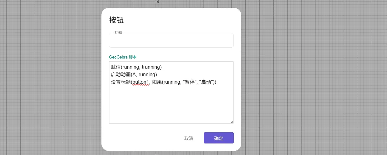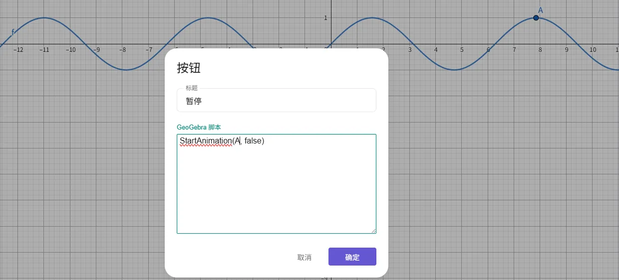 然后点击确定,就完成了动画创建过程,开始的时候可能有一个初始报错,只需要鼠标点击一下Geogebra左侧的工作区,就会正常