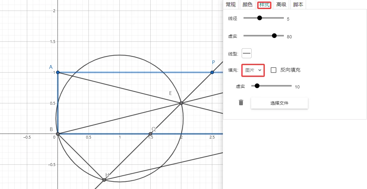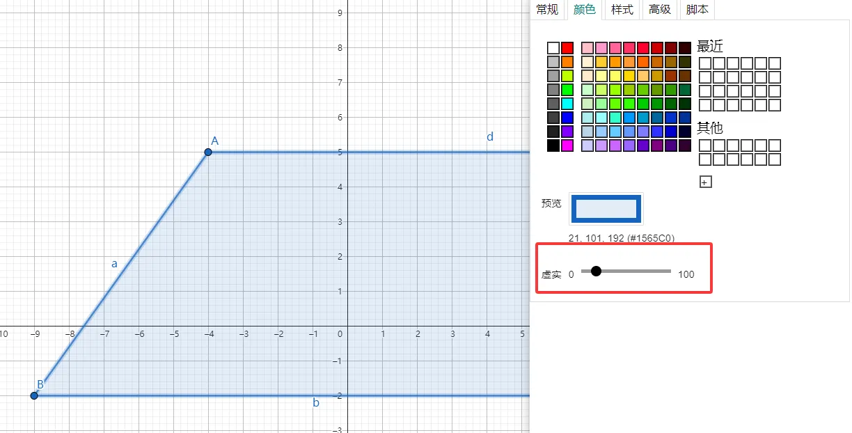 老刘博客今天我用GeoGebra做课件的时候发现添加的多边形,会有天空的效果,而且我们在对后期添加的几何图形,会有填充颜色的叠加,影响我们的几何图形展示的效果,在这里简单的截图说明一下,