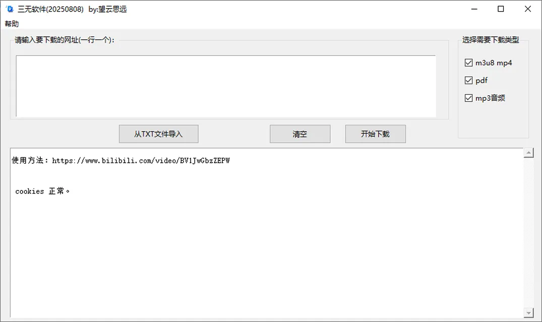 4、打开“三无下载器”,将含有视频等资源的网址粘贴至空白区,点击“开始下载”,等待即可,任务结束后,需下载内容后自动生成在解压缩文件夹中并命名。