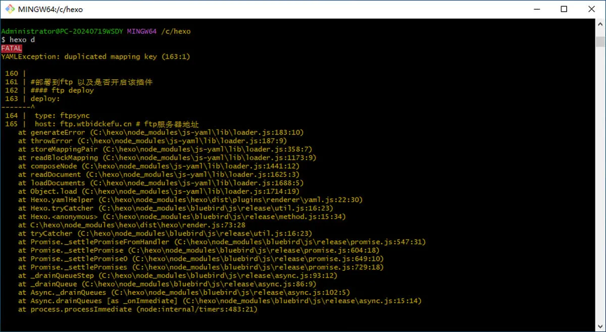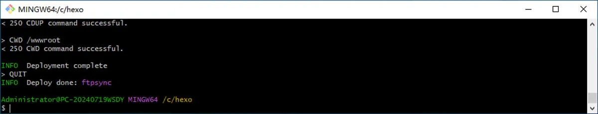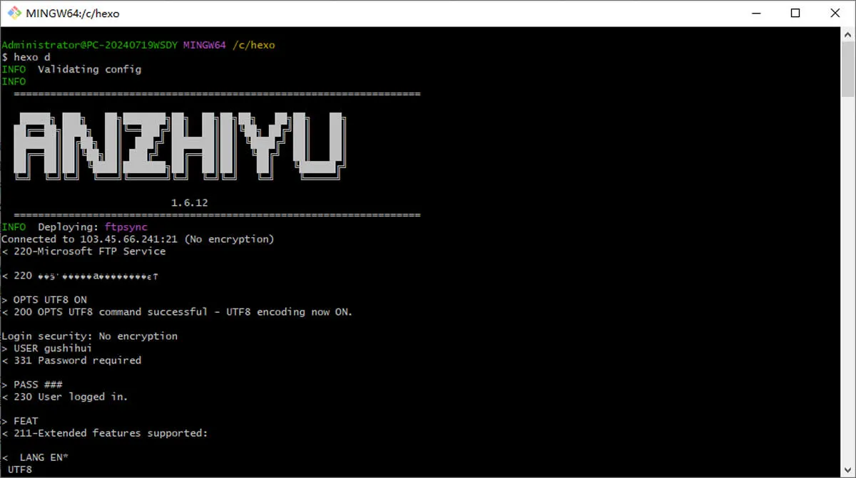 这次使用的依然是良心插件hexo-deployer-ftpsync,大家需要提前安装按一下,运行下面的代码
